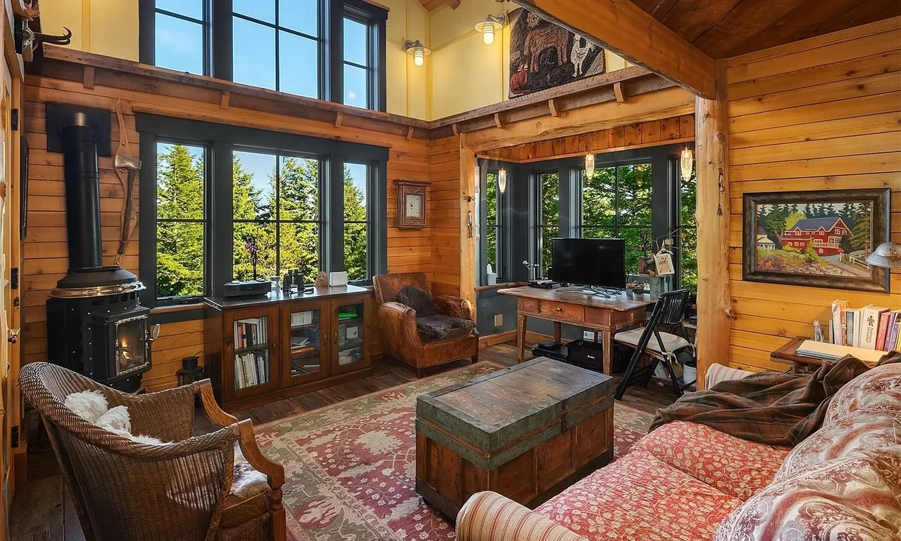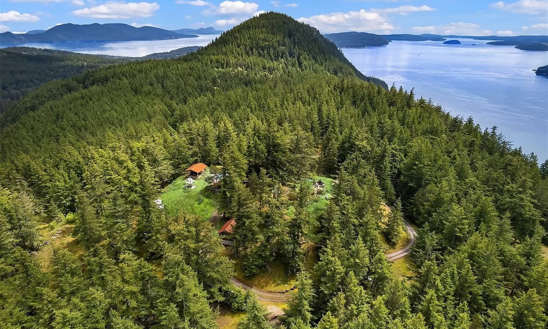 Featured on the Animal Planet series “Ultimate Treehouses,” the picturesque forest getaway is supported by six Douglas Firs on Kahboo Hill. In addition to the main treetop home, the property also includes a stone cottage, outdoor kitchen, in-ground heated swimming pool and over 30 acres of land.