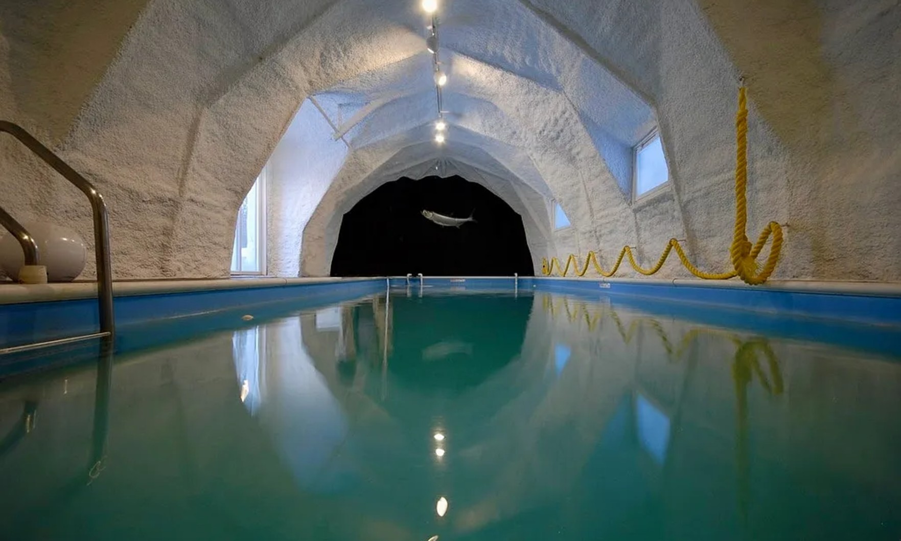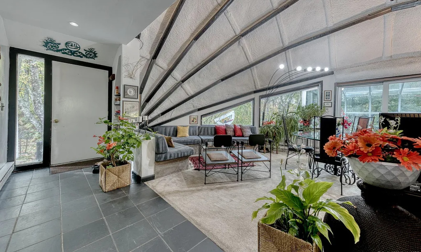 The all-weather igloo is just as interesting on the inside: the five-bedroom, six-bathroom interior also includes a solarium, 46-foot lap pool and cold plunge, plus funky architectural details.